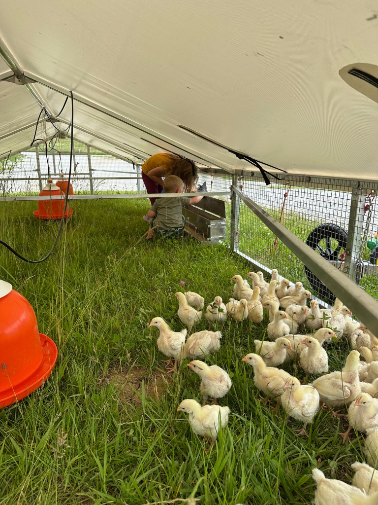 While the dew still clings to the grass, our day begins with the tug of a mobile chicken shelter — moved by hand, across fresh pasture. It’s not just routine — it’s ritual. Our chickens are never left in one place for long. They move daily, just like the rest of the farm, in rhythm with the land.
