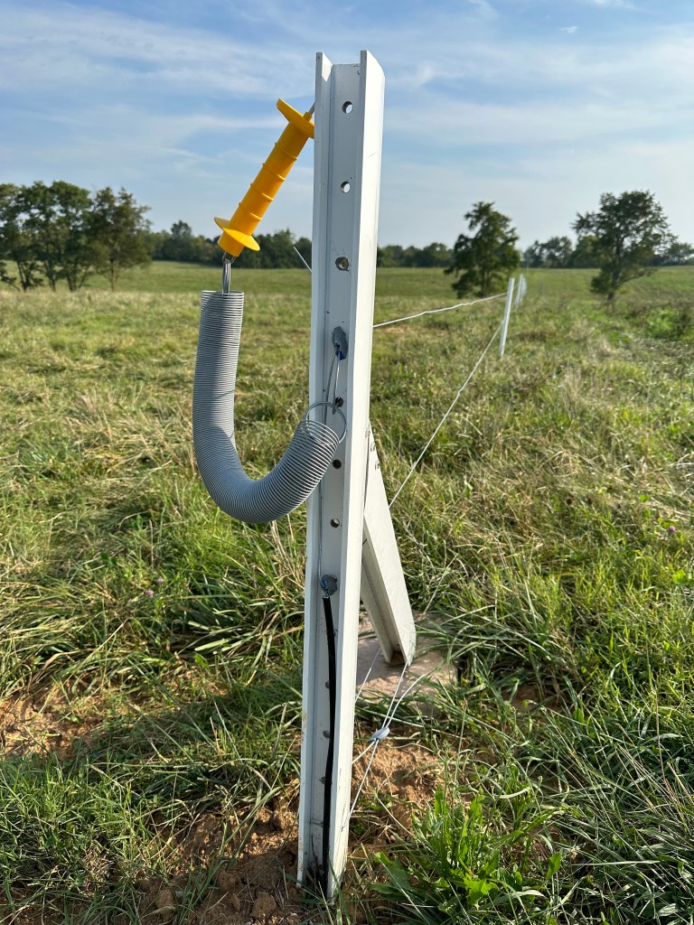 - No insulators needed: The post itself is non-conductive, so hot wire threads directly through it.